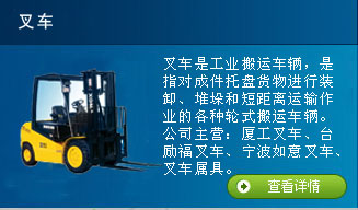 公司規(guī)模大、經(jīng)營(yíng)范圍廣,集叉車配件批發(fā)、叉車銷售、物流搬運(yùn)設(shè)備、維護(hù)及維修于一體的綜合實(shí)力強(qiáng)的叉車公司,在同行業(yè)中以“品種齊、貨源足、價(jià)格低、訂貨快、送貨及時(shí)”的一